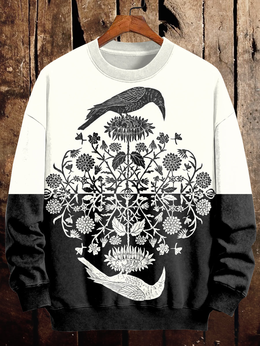 Unisex Retro Crow Art Illustration Print Casual Long Sleeve Sweatshirt