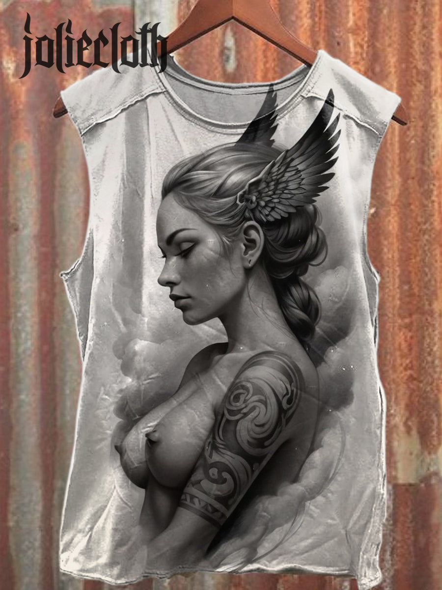 Unisex Retro Valkyrie Art Illustration Printed Casual Cotton Tank Top
