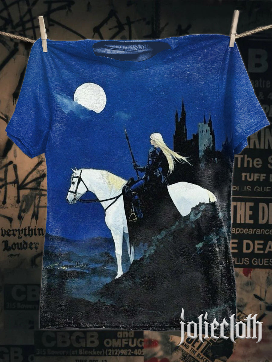 Unisex Retro White Horse Illustration Print Casual Cotton Short-Sleeve T-Shirt