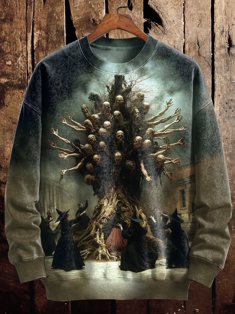 Unisex Retro Witch Casting Spell Art Illustration Casual Long Sleeve Sweatshirt