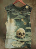 Unisex Ruffle Skull Print Casual Cotton Tank Top