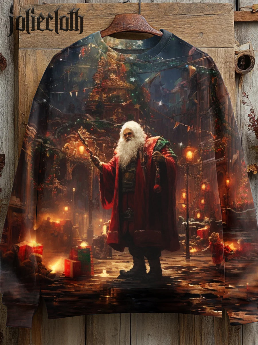 Unisex Santa Claus Art Illustration Printed Casual Sweatshirt