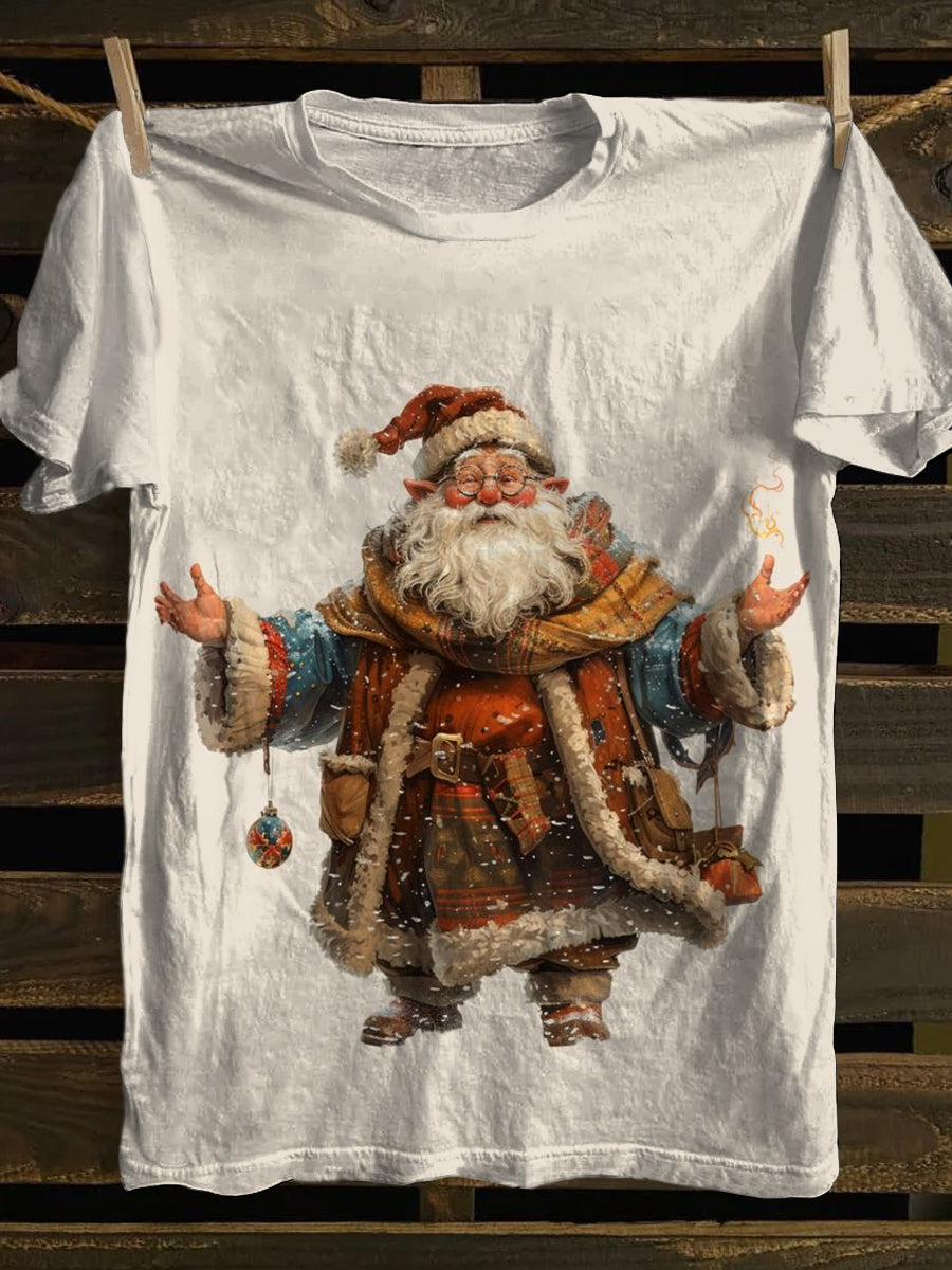 Unisex Santa Claus Illustration Print Casual Cotton Short Sleeve T-Shirt
