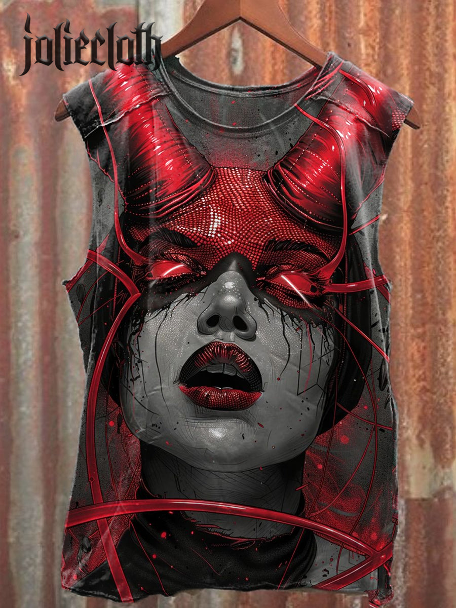 Unisex Sexy Mask Art Illustration Printed Casual Cotton Tank Top