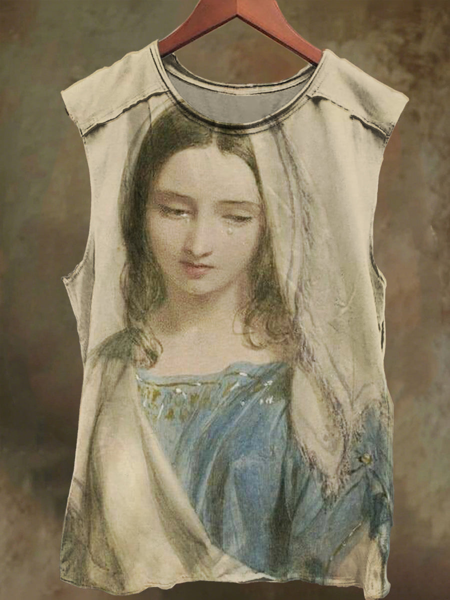 Unisex Tearful Virgin Print Casual Cotton Tank Top