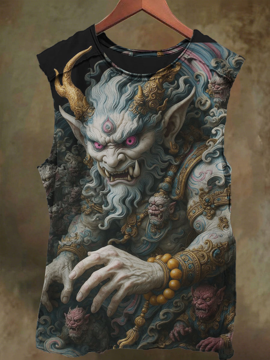 Unisex Two Corner Devil Print Casual Cotton Tank Top