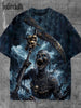 Unisex Undead Ax Skull Illustration Casual Cotton Short Sleeve T-Shirt