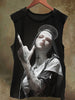 Unisex Vertical Middle Finger Nun Print Casual Cotton Tank Top