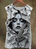 Unisex Visual Illusion Newspaper Girl Print Casual Cotton Tank Top