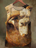 Unisex White Sheep Crocheted Print Casual Cotton Tank Top