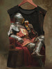 Unisex Wine Glass and Knight Print Casual Cotton Tank Top