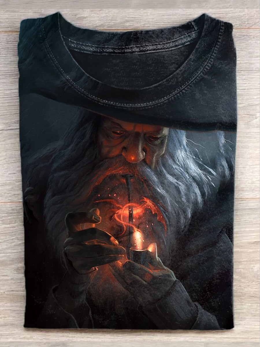 Unisex Wizard Gandalf Illustration Print Casual Round Neck T-Shirt