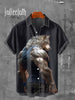 Unisex Wolf Warrior Art Illustration Printed Casual Short Sleeve Shirt