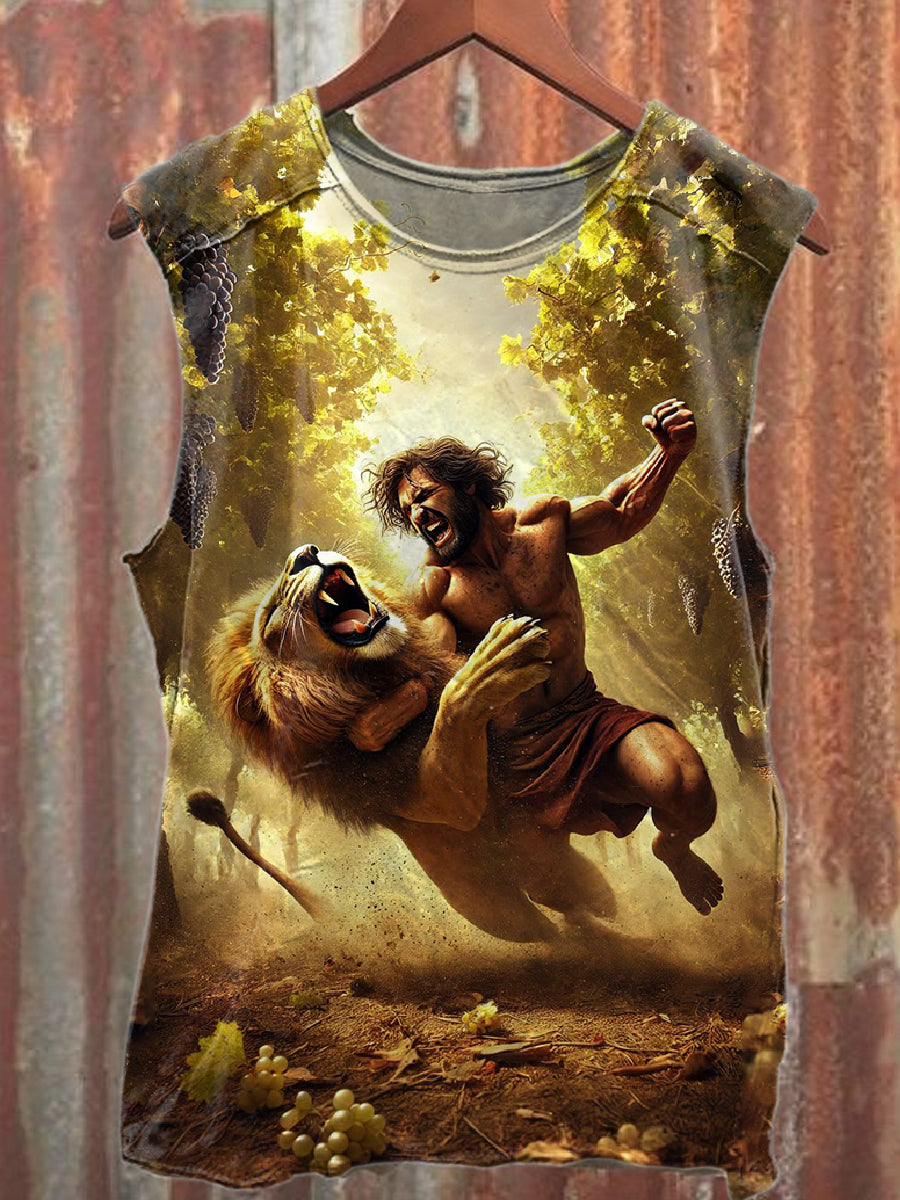 Vintage Duel Lions Print Cotton Tank Top