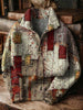 Vintage Patchwork Art Print Buttoned Stand Collar Sweater