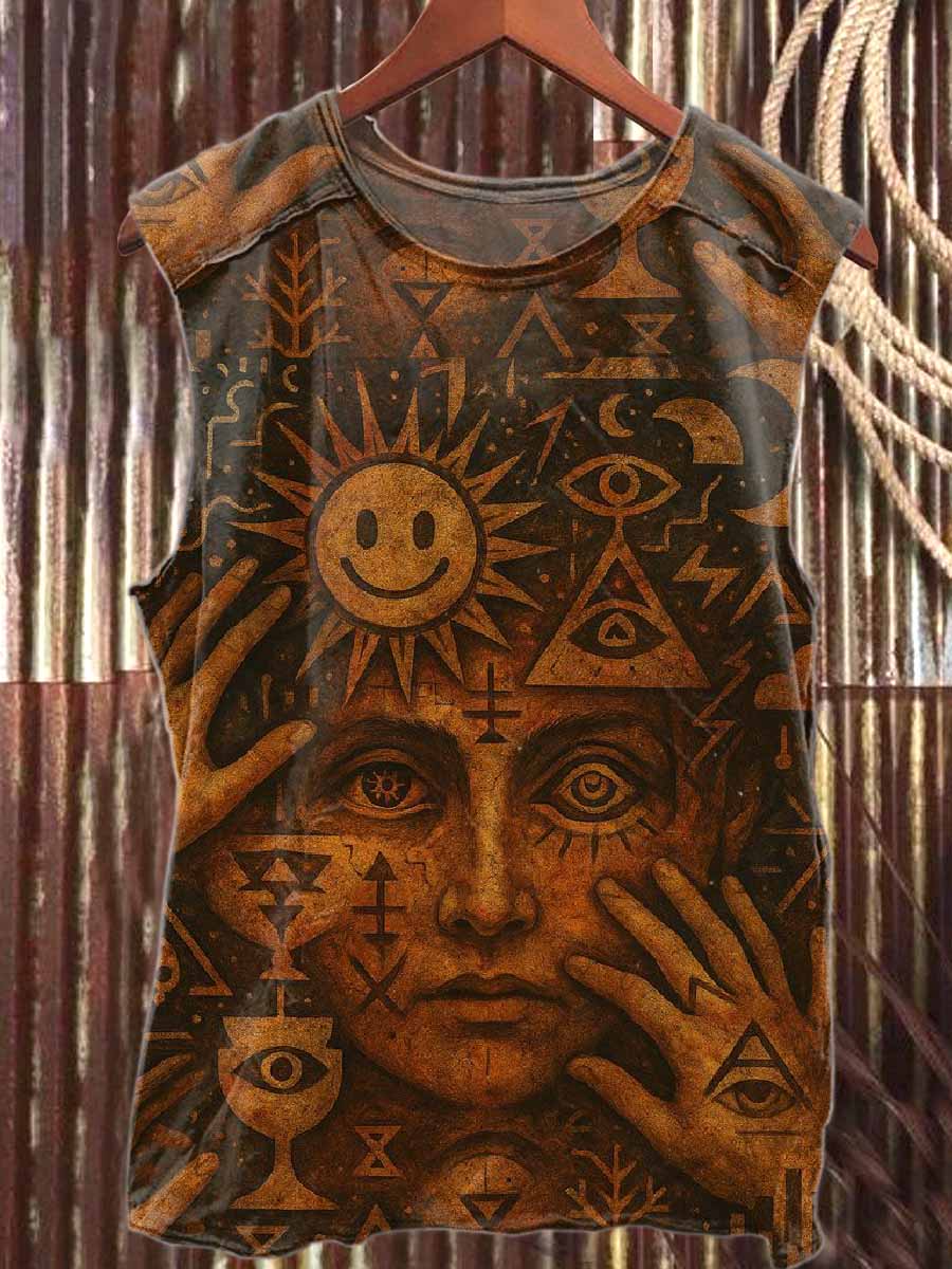Vintage Printed Casual Cotton Tank Top