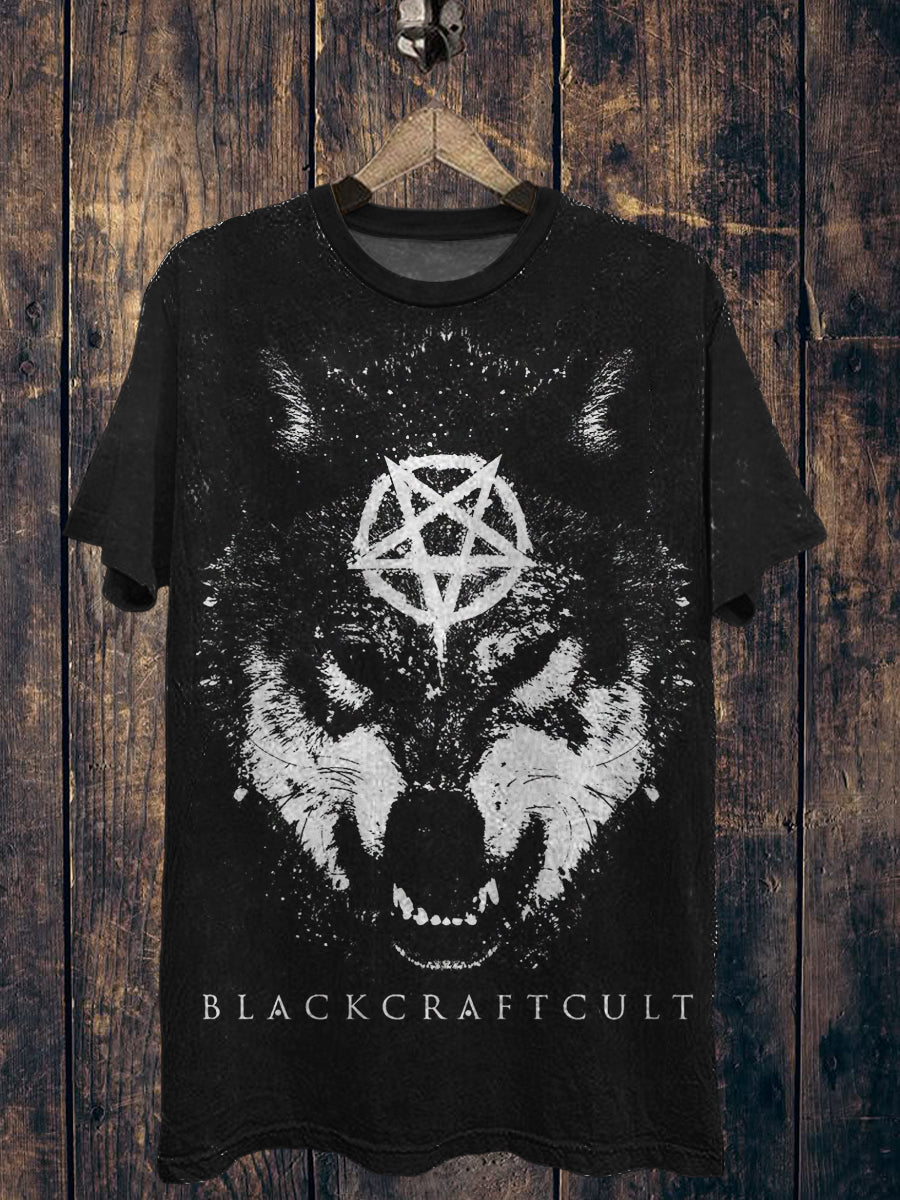 Wolf Printed Vintage Fashion Loose Short Sleeve T-Shirt