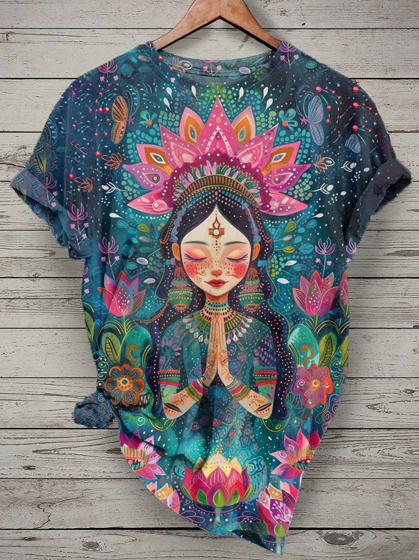 Women's Art Illustration Printed Casual Cotton Short Sleeve T-Shirt