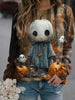 Women's Halloween Pumpkin Illustration Printed Casual Crewneck Sweatshirt