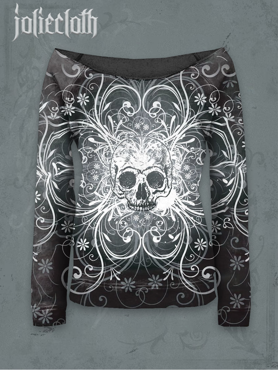 Women's Retro Skull Graffiti Print Casual Off-Shoulder Long Sleeve Top