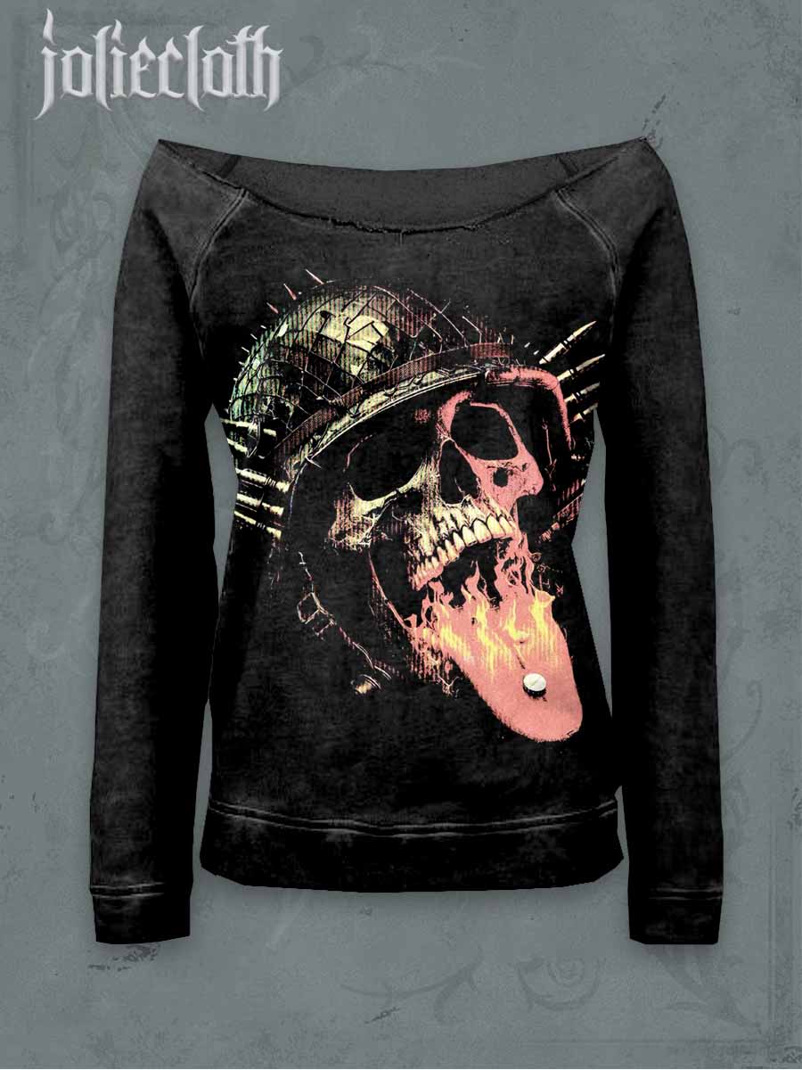 Women's Retro Skull Graffiti Print Casual Off-the-shoulder Long sleeve Top